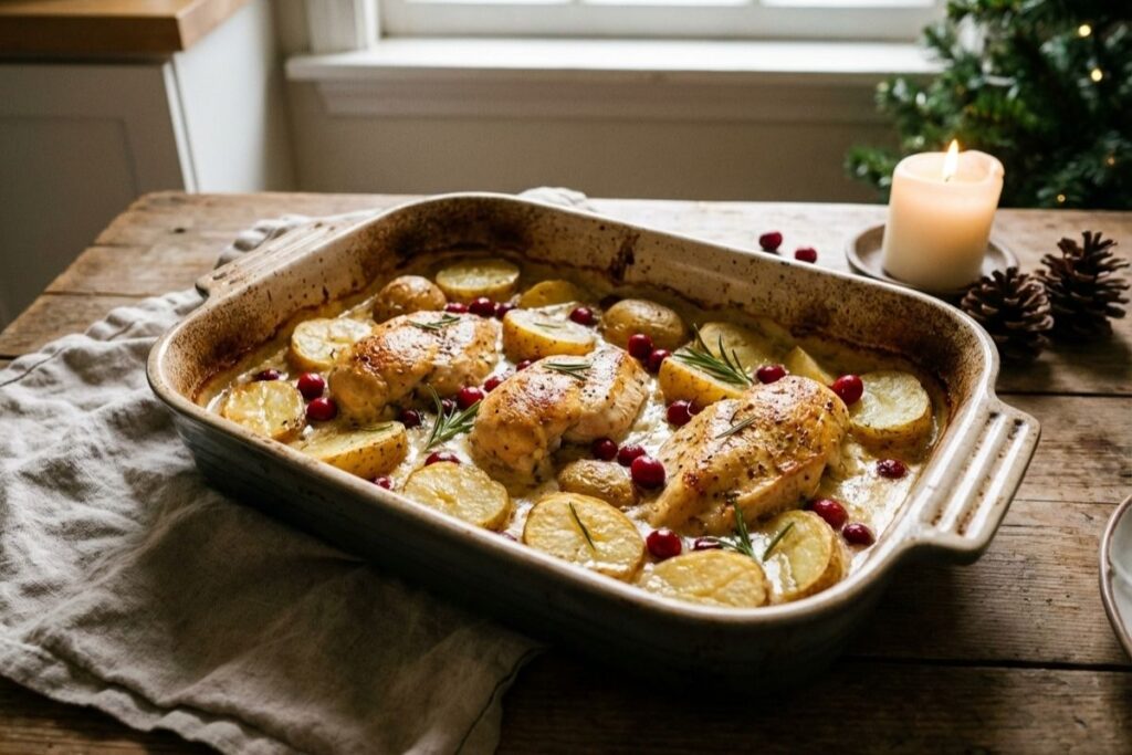 One-Pan Weihnachts-Hähnchen mit Kartoffeln (günstig, cremig & perfekt für Familien) Weihnachten ohne Stress Weihnachten soll…